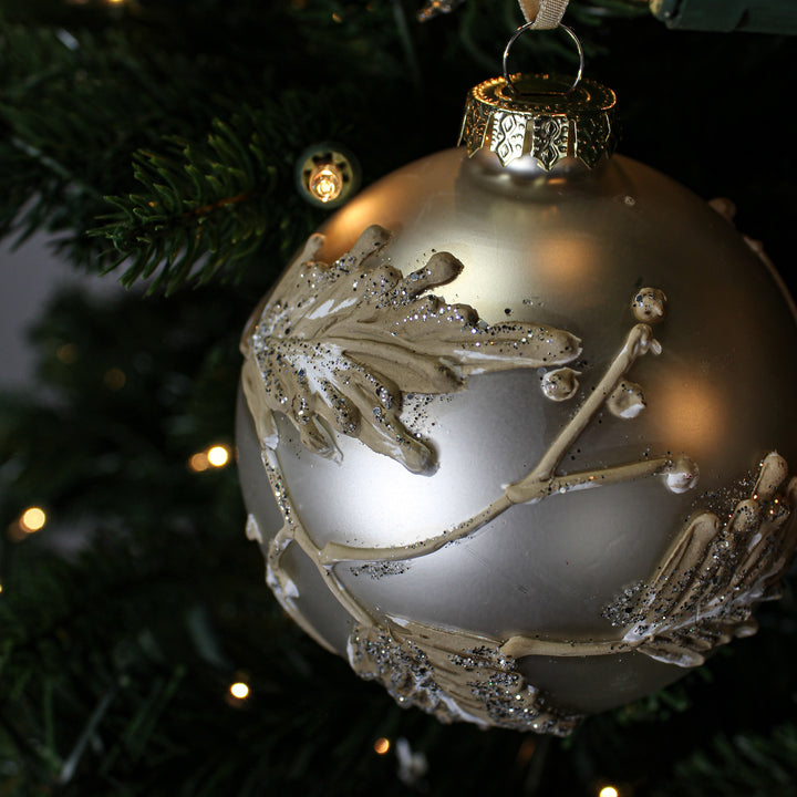 Les feuilles de houx finement dessinées, ornées de paillettes platine, offrent à cet ornement une touche naturelle et festive. La finition blanche met en valeur l’éclat scintillant et apporte une luminosité subtile. Elle se marie à merveille avec d’autres décorations métalliques ou neutres pour un ensemble harmonieux. Sa légèreté permet de la disposer facilement à différentes hauteurs du sapin.