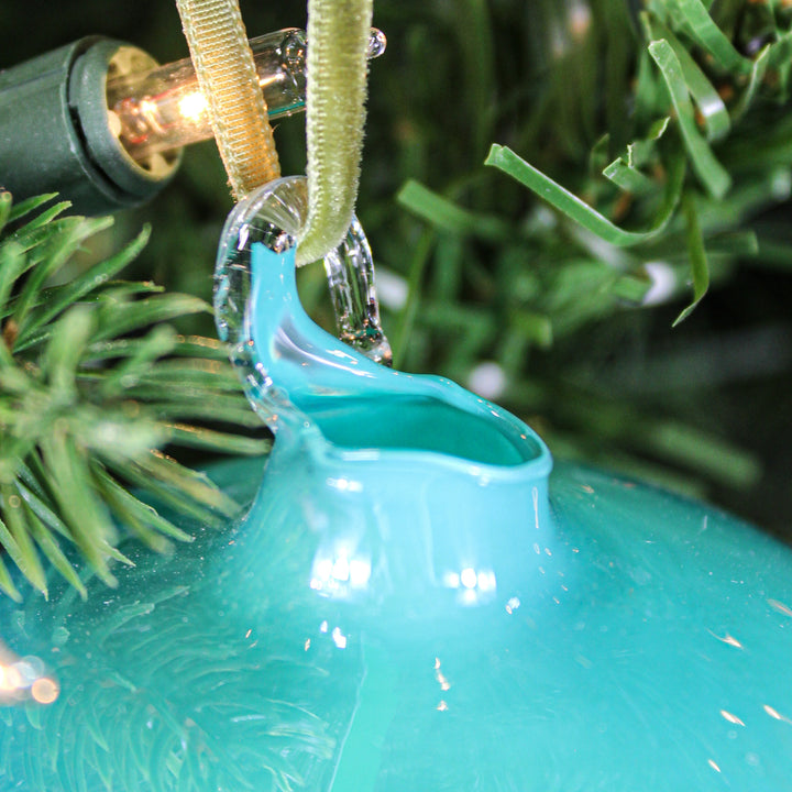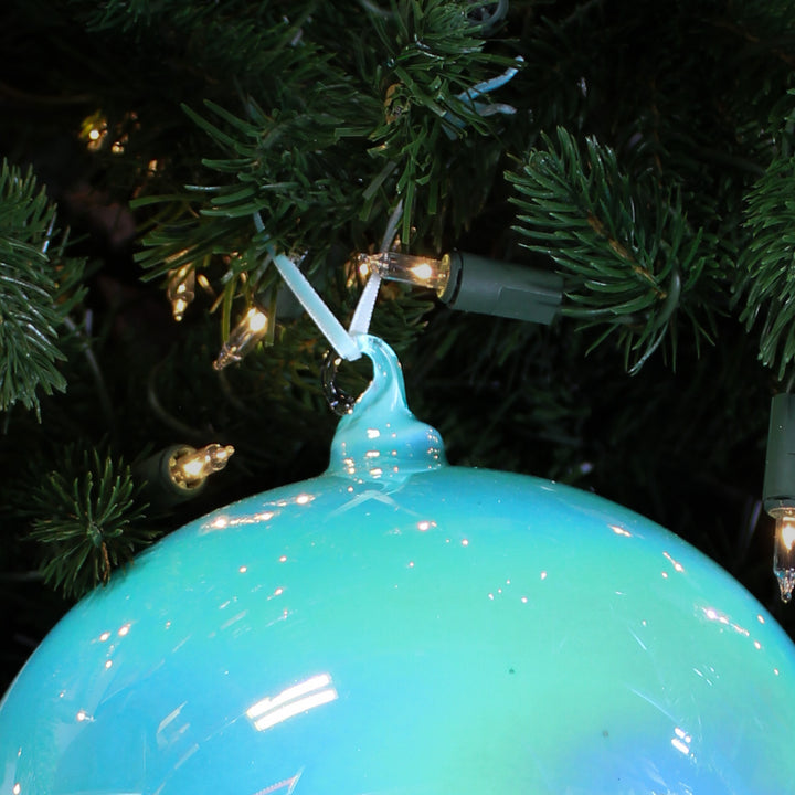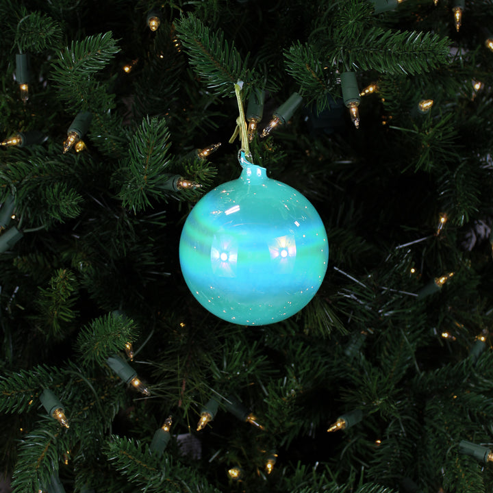 La boule irisée aqua allie élégance et éclat grâce à sa surface brillante et sa couleur rafraîchissante. Sa taille généreuse permet de structurer harmonieusement un grand sapin ou une composition suspendue. Elle diffuse la lumière de façon subtile pour créer une ambiance magique. Parfaite pour une décoration de Noël moderne et lumineuse.
