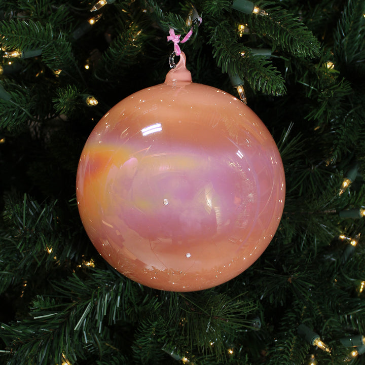 Cette boule irisée corail apporte une note chaleureuse et ensoleillée à vos décorations de fêtes. Ses reflet changeants captent magnifiquement la lumière, offrant un rendu à la fois pétillant et élégant. Elle s'associe perfection avec des tonnes dorés ou crème pour un style lumineux. Parfaite pour un Noël joyeux et coloré.