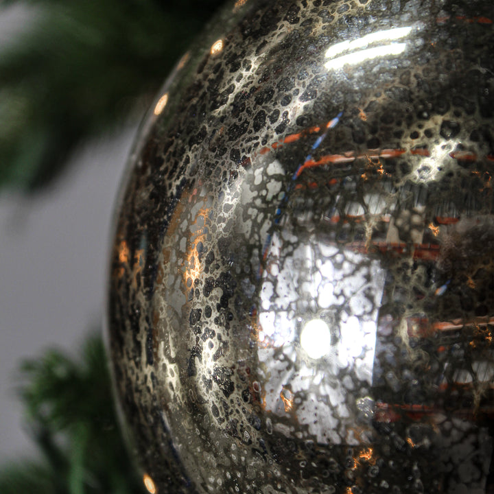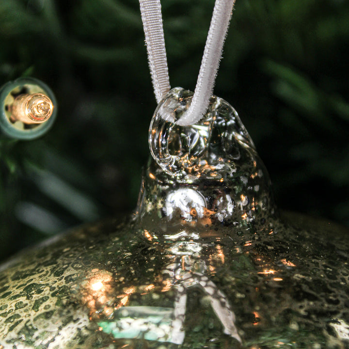 La boule en verre mercure argent vintage de 6 pouces devient la pièce maîtresse de votre décoration. Son diamètre généreux et ses reflets argentés apportent une note somptueuse. Elle attire le regard et capte magnifiquement la lumière des guirlandes. Sa finition artisanale garantit un charme unique à chaque pièce. Un bijou décoratif pour les amateurs de style classique chic.