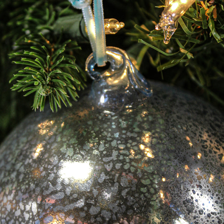 La boule en verre mercure bleu Delft marie le charme vieilli du mercure à la beauté intemporelle du bleu Delft. Sa finition légèrement patinée lui donne un aspect artisanal et précieux. Elle reflète la lumière avec chaleur tout en conservant une allure douce. Idéale pour un style classique revisité, elle rehausse la sophistication du sapin. Une touche subtile pour une ambiance festive et élégante.