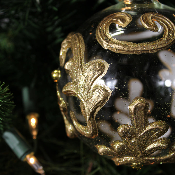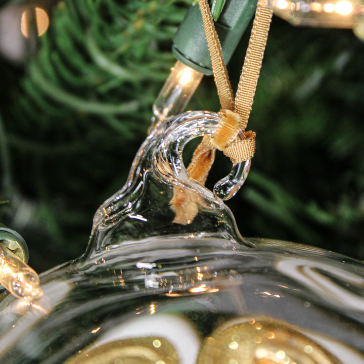 La boule en verre or/transparent se démarque par sa taille généreuse qui attire l’œil. Sa transparence met en valeur les reflets dorés pour un rendu somptueux. Elle peut servir de point central sur un grand sapin ou dans une composition décorative. Alliant sobriété et prestige, elle apporte un vrai cachet à la décoration. Une pièce maîtresse festive et raffinée.