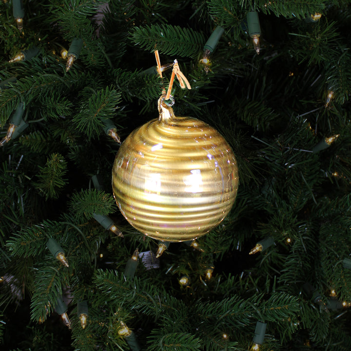 Un éclat doré tourbillonne sur cet ornement, créant un jeu de lumière captivant. La surface brillante renforce son aspect luxueux et festif. Il s’associe bien à des tons riches comme le rouge ou le vert profond. Sa finition impeccable met en valeur l’ensemble du sapin.