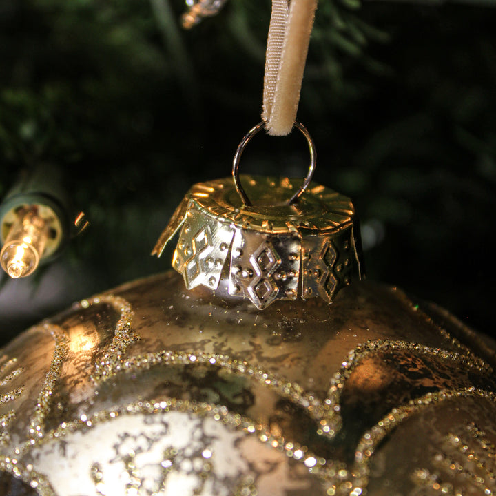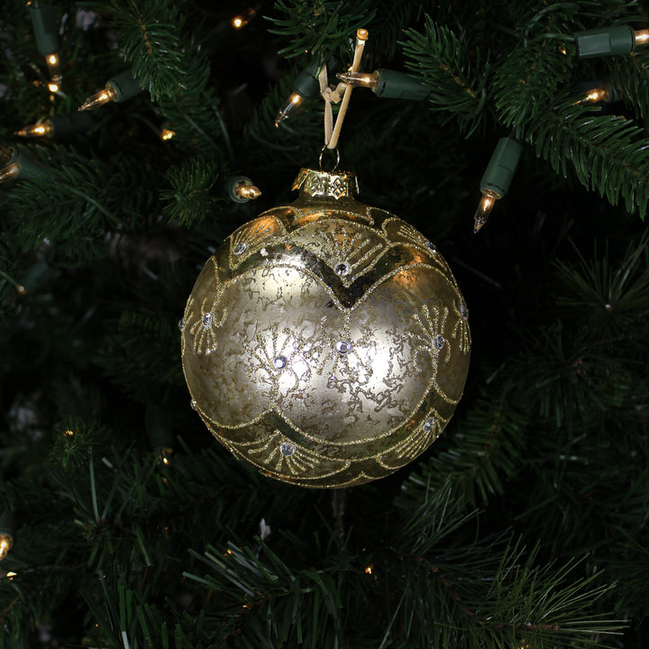 Boule en verre tourbillons paillettes mercure or clair 4,5"