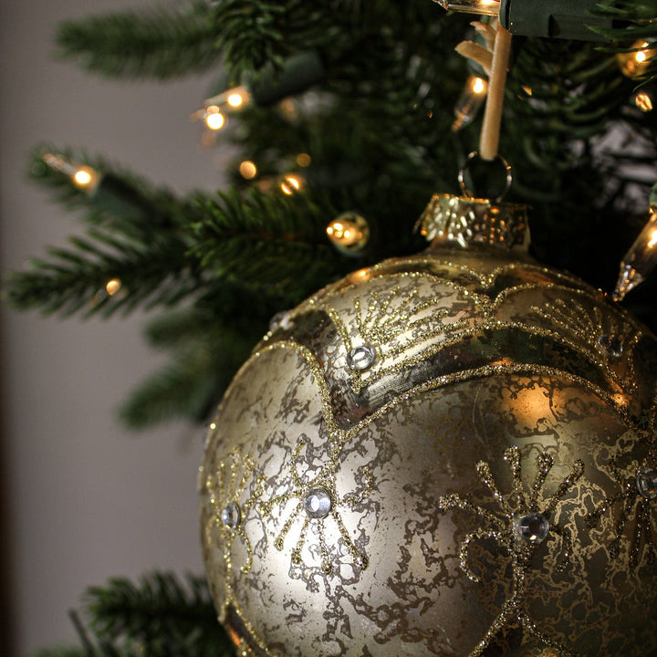 Le jeu des tourbillons pailletés en mercure or clair donne à cet ornement un aspect dynamique et lumineux. Chaque mouvement du sapin révèle de nouveaux reflets scintillants. Il est parfait pour compléter une décoration où l’or est prédominant. Sa surface lisse et brillante évoque l’élégance des fêtes traditionnelles.