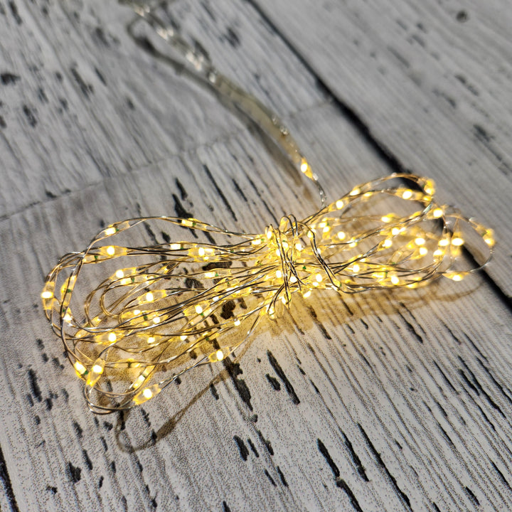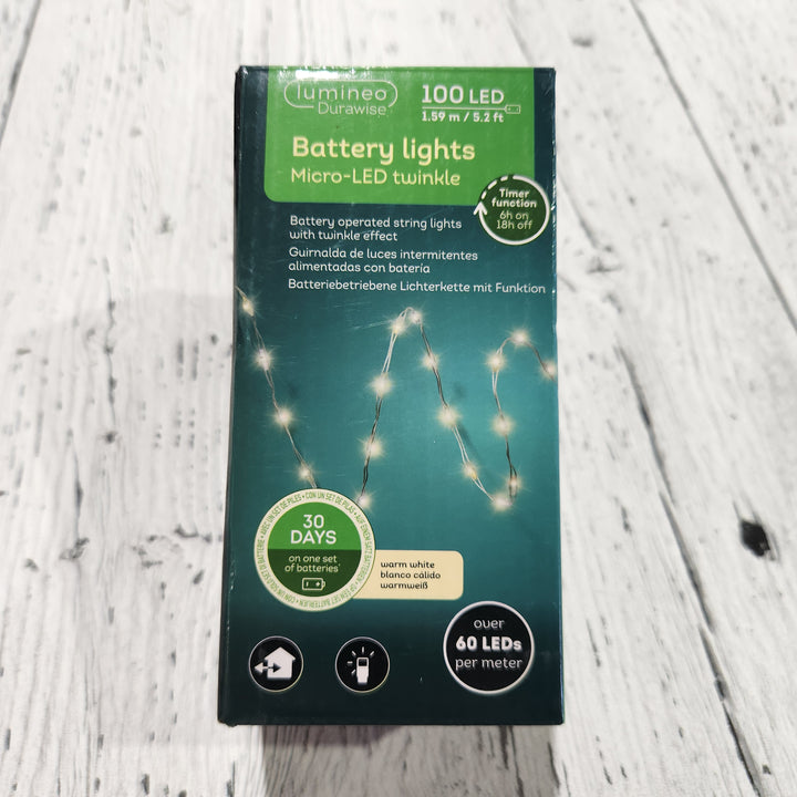 Light up your space with these 100 micro LED Durawise warm white lights, perfect for adding a magical and cozy touch to both indoor and outdoor settings.