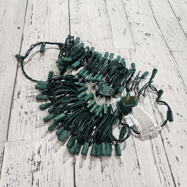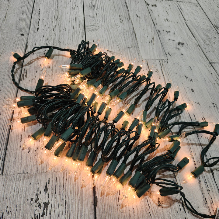 100 Mini Warm White Incandescent Lights, Green Wire, Indoor, 18.56'