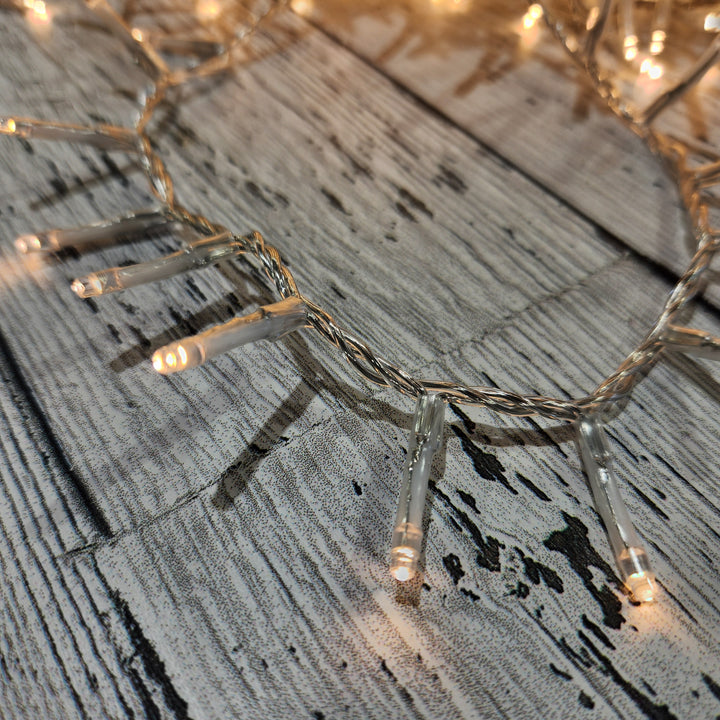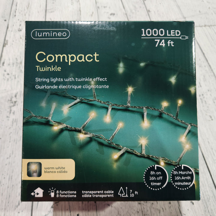 1000 Warm White LED Lights, Transparent Wire, 8 Functions, 74'