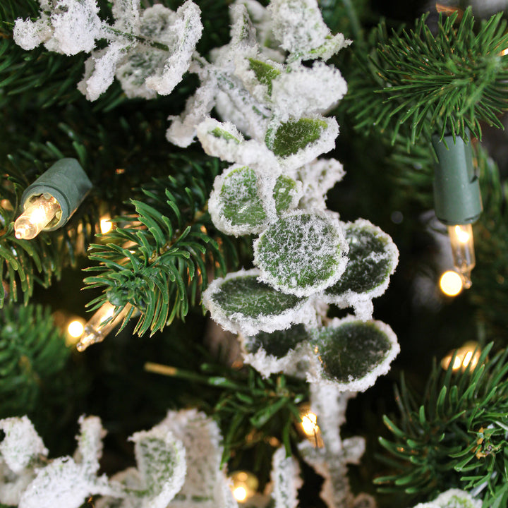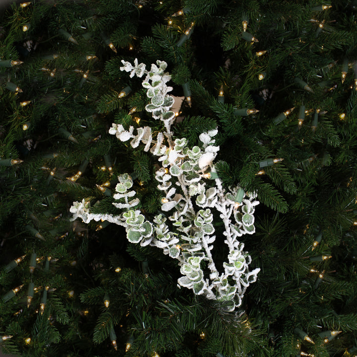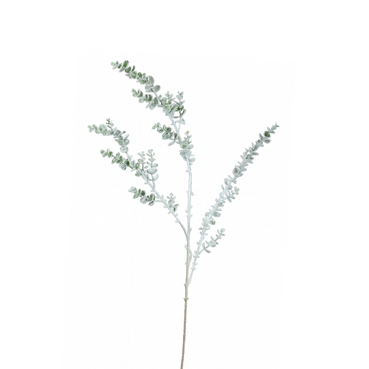 Bring a natural, wintry touch to your decor with this 39-inch green and white snowy eucalyptus branch. Its realistic leaves covered in a delicate white frost evoke the peaceful atmosphere of winter forests. Ideal for arranging Christmas bouquets, embellishing a wreath, or decorating a mantel, it fits perfectly into a festive and elegant atmosphere. This artificial branch retains all its beauty season after season without requiring maintenance. A refined decorative choice to enhance your home during the holiday season.
