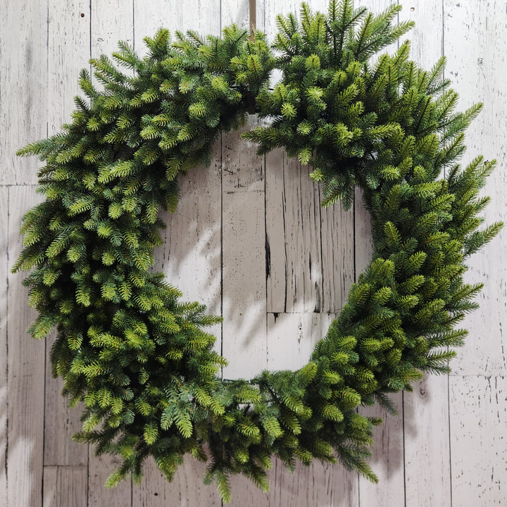 This grand 48-inch green Catskill pine wreath, crafted with 310 branches, is perfect for creating a striking and natural décor. With its dense, realistic foliage, it evokes the timeless elegance of the Catskill pine forests. Its large diameter makes it ideal for expansive spaces like a spacious front door, wall, or mantel. Its lush, authentic look brings a touch of greenery and freshness to your Christmas décor, ready to be customized to your liking or left as is for simple elegance.