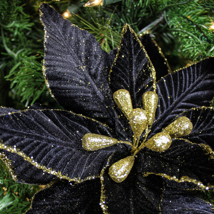 For a bold and contemporary look, this 11.5" black velvet poinsettia stem is the perfect element. It adds character to your decor while remaining elegant and sophisticated.