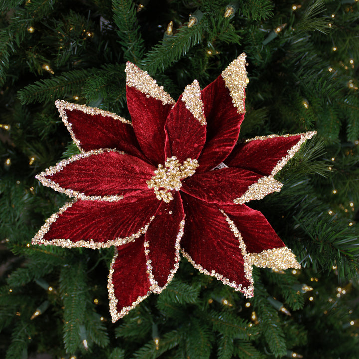 22" Burgundy Rose Gold Glitter Poinsettia Stem