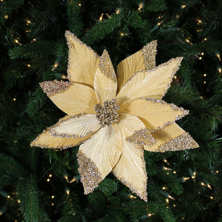 This 22" champagne glitter poinsettia stem captivates with its soft and luminous hue. The light gold glitter gives it a refined shine, perfect for an elegant and luminous decor. It brings sophistication and clarity to your arrangements. Ideal for a chic and timeless theme.