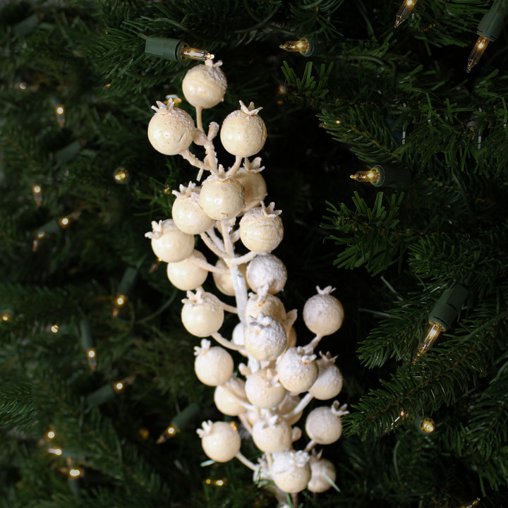 This 24" stem of blush snow crabapples combines elegance and delicacy with its pink fruits and white flocking. It blends harmoniously into romantic or frosted themes. Perfect for trees, vases, or centerpieces, it adds texture and volume. Its soft hue makes it a versatile and refined element.