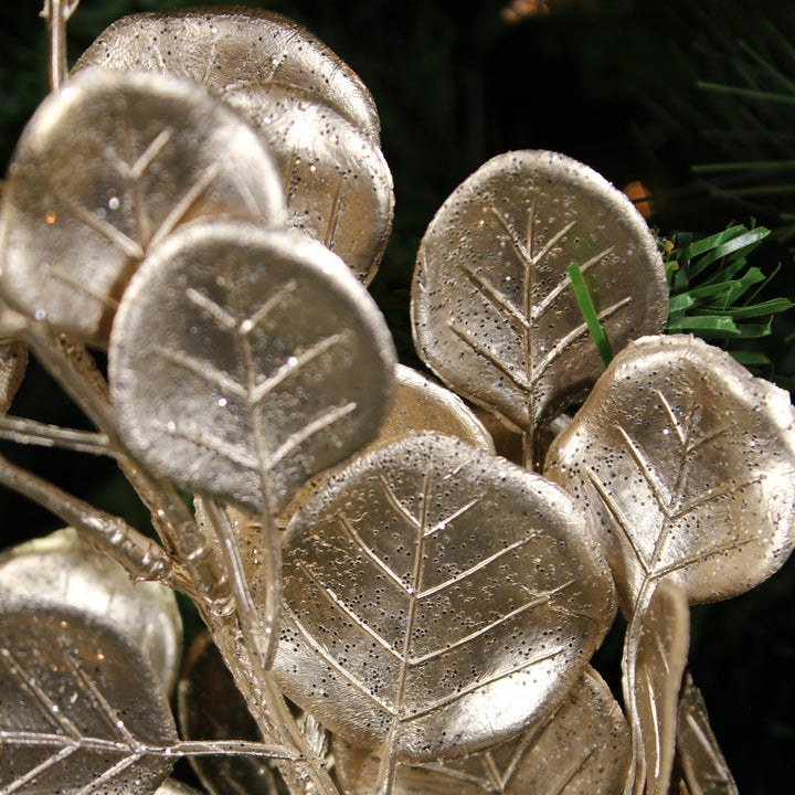 This 21" champagne metallic eucalyptus stem combines naturalness and shine. Its metallic leaves reflect the light for an elegant look. Ideal for a glamorous or contemporary theme, it instantly enhances the sophistication of your creations.