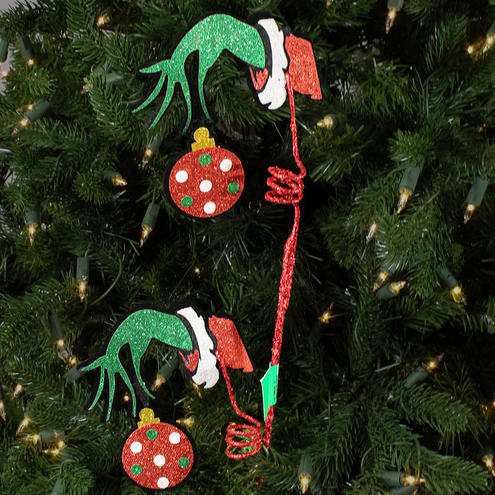 This 25" green, red, white, and green elf hand ornamental stem adds a touch of humor and originality to your arrangements. Inspired by mischievous elves, it immediately attracts attention with its bright colors and playful design. It fits easily into a tree or large wreath. A perfect choice for a cheerful, family-friendly decor.
