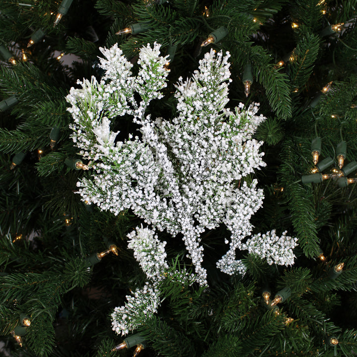 This 21" natural white snow-covered pine stem captivates with its realism and careful finish. The needles covered in artificial snow evoke a traditional winter decor. Perfect for adding volume and freshness to your arrangements. It harmonizes wonderfully with red berries, pine cones, and gold decorations.