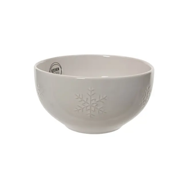 This white ceramic snowflake bowl elegantly combines functionality and a wintery feel. Its rounded shape and embossed snowflake pattern make it a perfect accessory for festive meals. It can stylishly accommodate soups, fruit, or treats. Perfect for a winter-inspired table.