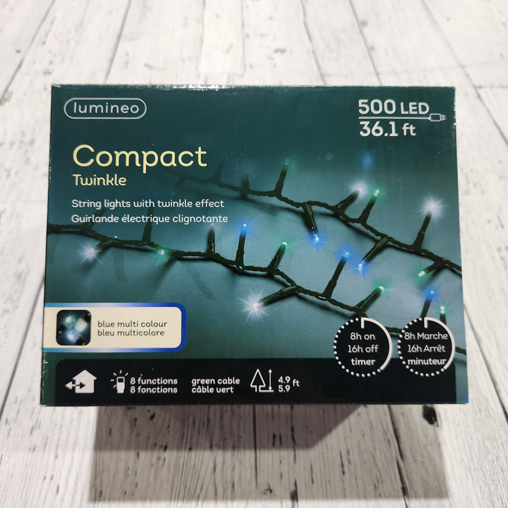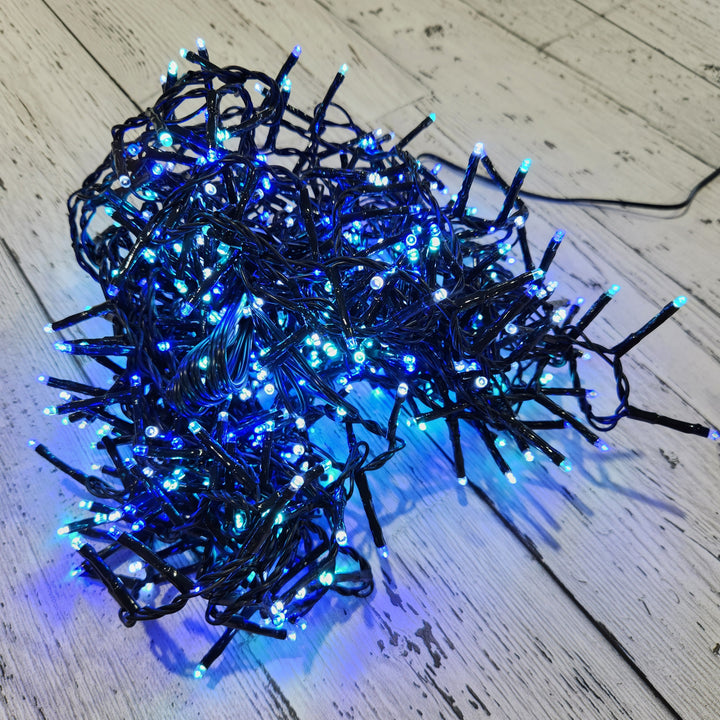 500 Blue, Green and Cool White LED Twinkle Lights - 8 Functions - Green Wire - Outdoor - 36.1'