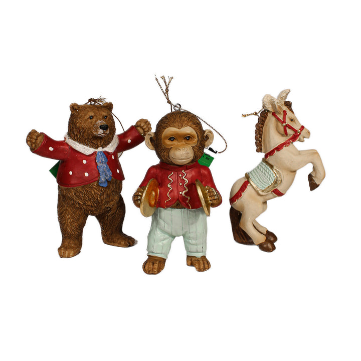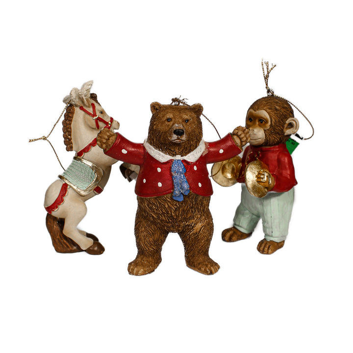 Bring the circus into your tree with these assorted Christmas circus animal ornaments, available in monkey, bear, and horse designs. Each colorful figurine evokes the magical world of the circus with humor and tenderness. Ideal for a lively Christmas decoration, these decorative animals will delight young and old alike. Perfect for a festive and joyful atmosphere, they bring originality and movement to your tree. A playful and poetic theme for an unforgettable Christmas.