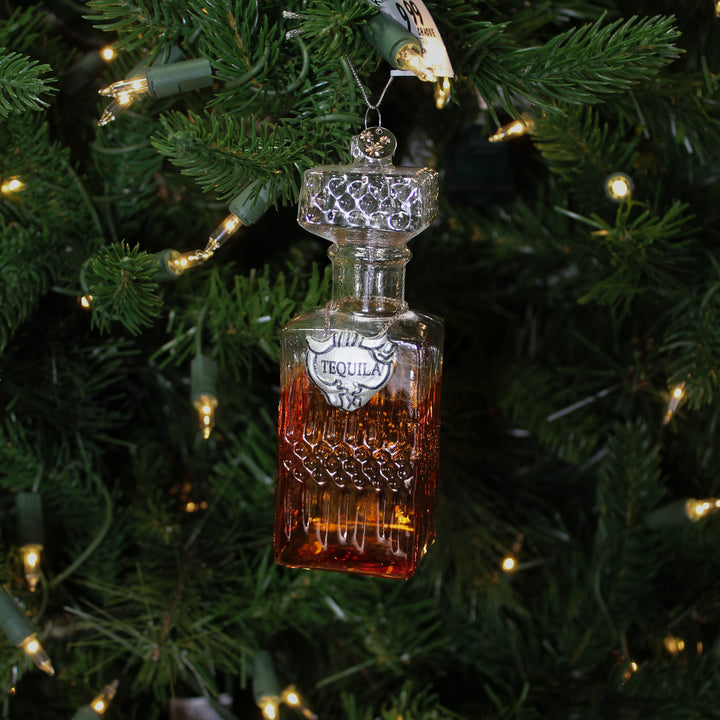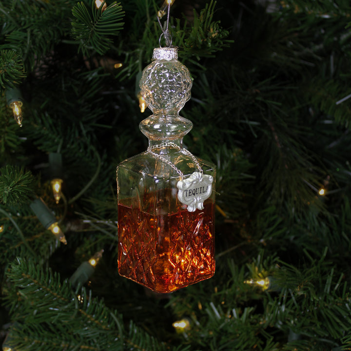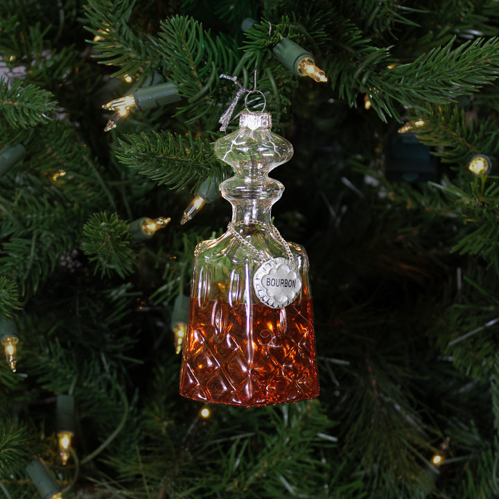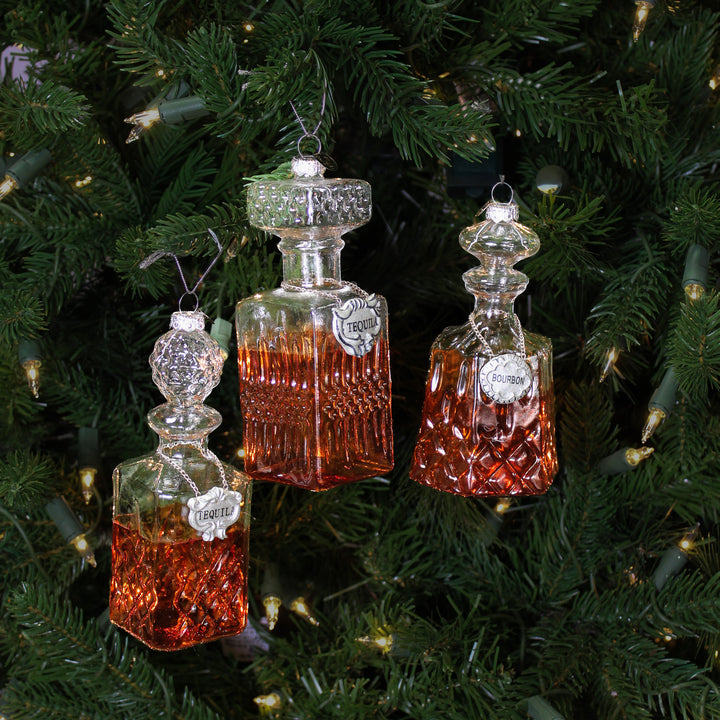 Complete your Christmas decor with this set of glass ornaments featuring assorted spirit decanters. Each decanter features intricate detailing and vibrant colors, bringing a festive and refined feel to your tree. These unique decorations evoke the convivial atmosphere of the holiday season over a glass of wine with loved ones. Perfect for those who love unusual decorations, they add a touch of humor and understated luxury. They blend seamlessly into a chic and offbeat Christmas theme.