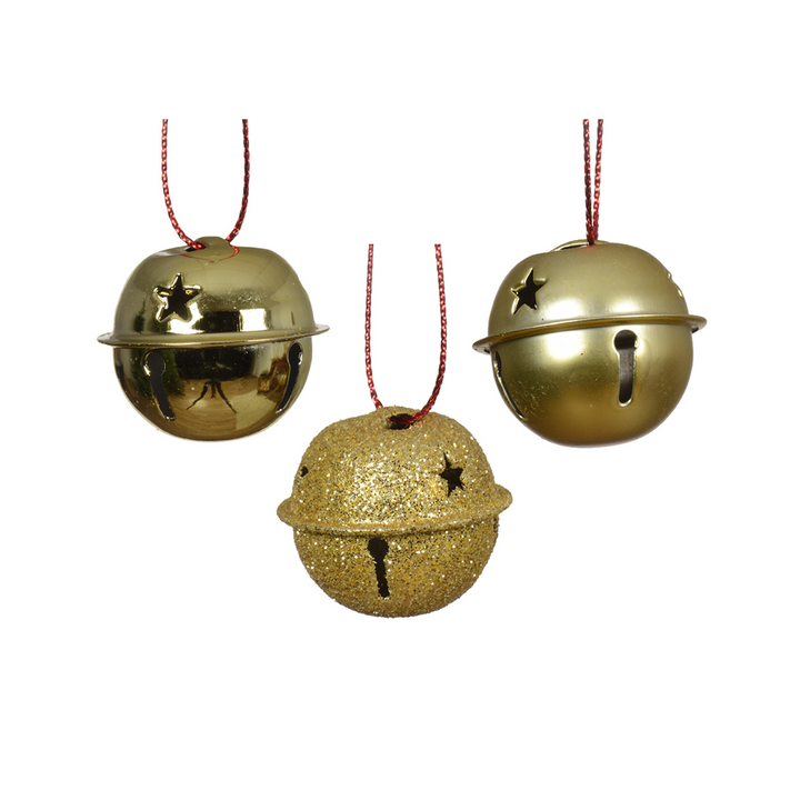 Gold Metal Christmas Bell Ornaments - Box of 12