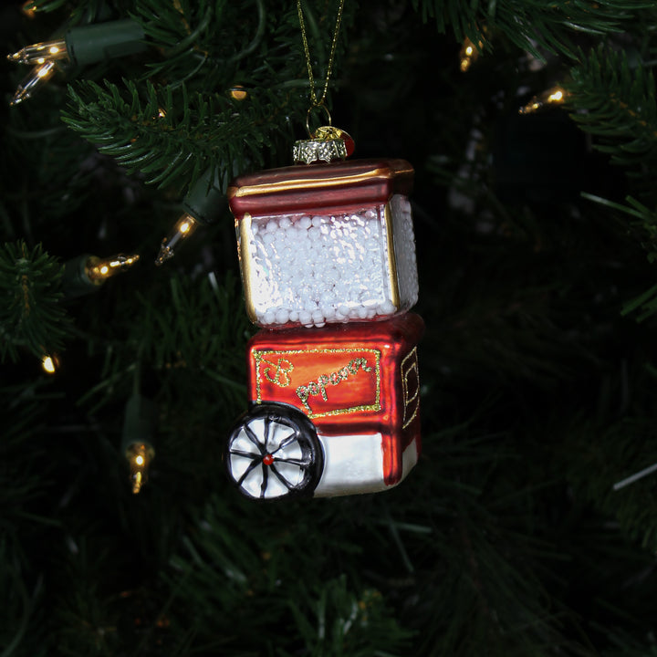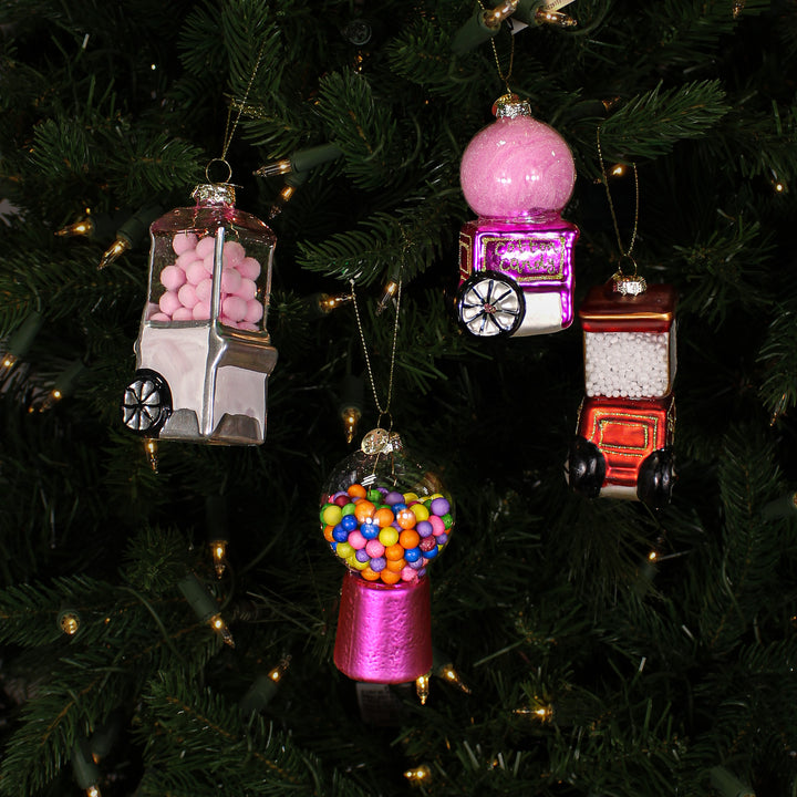 Give your Christmas tree a playful and sweet atmosphere with these glass ornaments featuring assorted gourmet machines. Whether it's popcorn, cotton candy, or a candy dispenser, each decoration evokes the magic of funfairs and childhood. The colored glass and careful details bring sparkle and originality to your festive decorations. These fun pieces are perfect for a gourmet or vintage Christmas theme. They pair wonderfully with traditional decorations for a charming contrast.