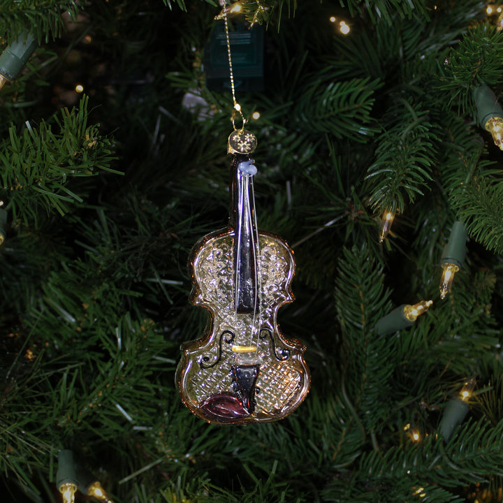 Bring a melodious ambiance to your tree with these assorted glass violin ornaments, available in three elegant colors. Each piece is intricately decorated, capturing the classical and poetic spirit of music. These original decorations add an artistic and sophisticated touch to your Christmas tree. Ideal for music lovers or themed decorations, they pair perfectly with fairy lights. Carefully hung, they offer timeless charm to your festive atmosphere.