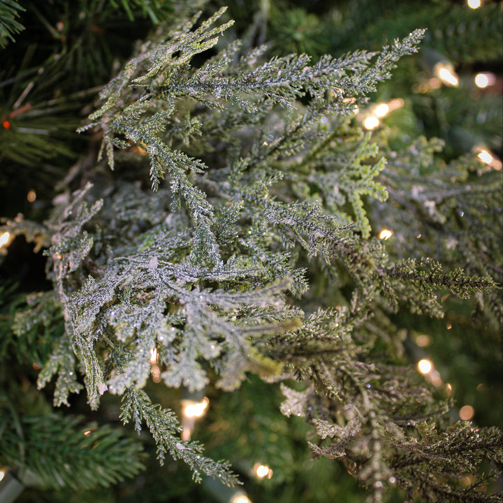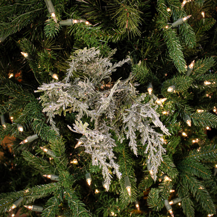 The 17" Frosted Greenery Bouquet combines different plant textures covered in a veil of frost. It brings depth and elegance to your holiday decorations. Perfect for dressing up a vase or enhancing a floral arrangement. A charming addition for a refined winter ambiance.