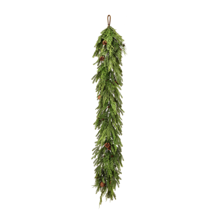 The 72x12" natural-feel mixed conifer garland combines different varieties of foliage for a rich and authentic effect. Its balanced composition adds depth and texture to your decorations. Perfect for a forest or traditional theme. A versatile element to enhance your interior.