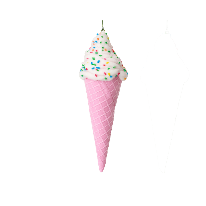 The matching 7" plastic ice cream cone ornament features a playful and colorful design. It adds a delicious and original touch to your tree. Perfect for a sweet or whimsical theme. A fun detail to surprise your guests.