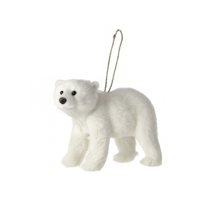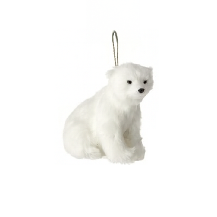 The 4.5-5" faux fur polar bear ornament is captivating with its soft texture and endearing look. Ideal for decor inspired by arctic landscapes. A small, tender detail for your holidays.