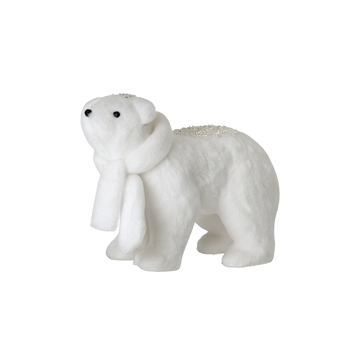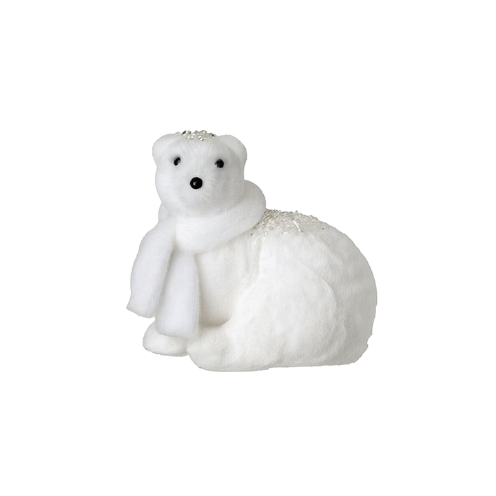 The 9.5-13.5" faux fur polar bear ornament with scarf is charmingly soft and charming. Its silky fur and colorful scarf make it the perfect addition to a warm, wintery decor. Perfect under the tree, on a shelf, or in a polar display. A detail the whole family will love.
