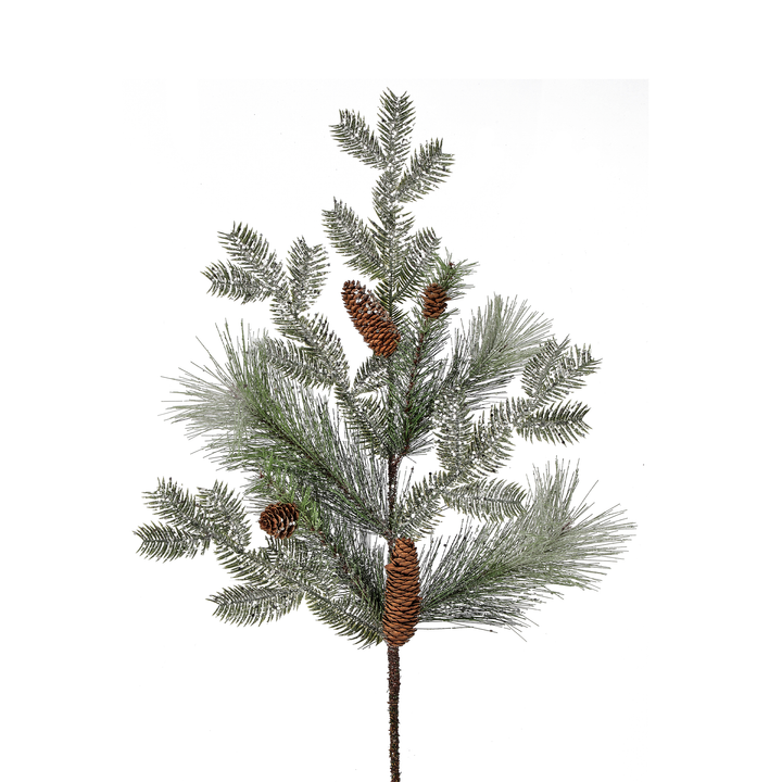 This 30" glitter pine stem with cones brings sparkle and authenticity to your festive arrangements. Its realistic foliage is enhanced with light touches of glitter, while its natural cones add a rustic and warm touch. Ideal for decorating a vase, wreath, or garland. It evokes the beauty of a snowy winter landscape.