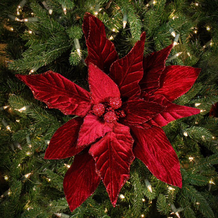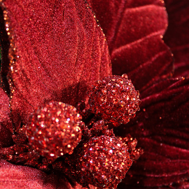 The 19"D x 30"H display poinsettia stem impresses with its lifelike petals and generous size. Its vibrant color instantly brightens any space. Perfect as a centerpiece or entryway decoration, it evokes the iconic flower of the holiday season.