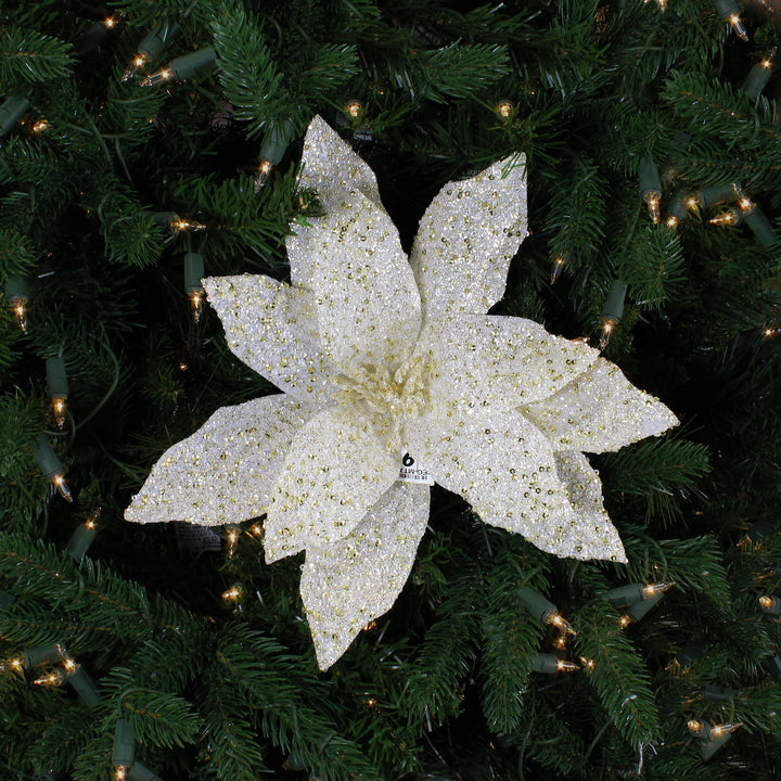 The 22" Glitter and Sequin Poinsettia Stem combines shine and texture for a sumptuous look. Its sparkling details catch the light and enhance your decorations. Perfect for a glamorous tree or a festive bouquet. A must-have for a sparkling Christmas.