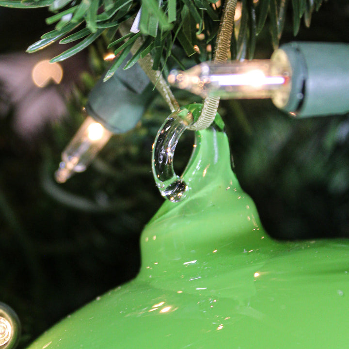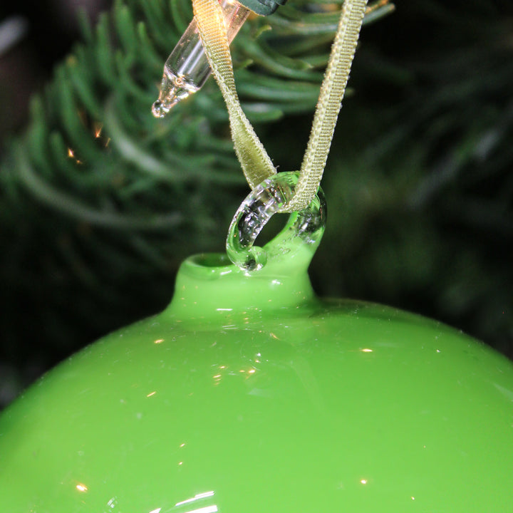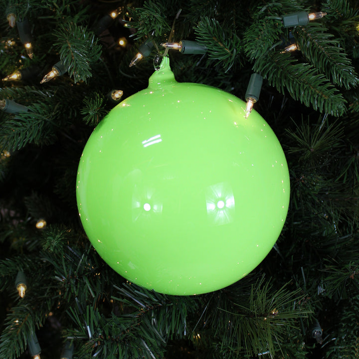 In its large format, this lime green ball becomes a bright and bold focal point. Its reflective surface enhances the depth and richness of the color. It draws the eye and structures the tree's composition. Perfect for creating a vibrant contrast with more muted hues.