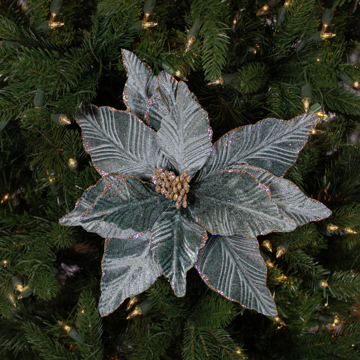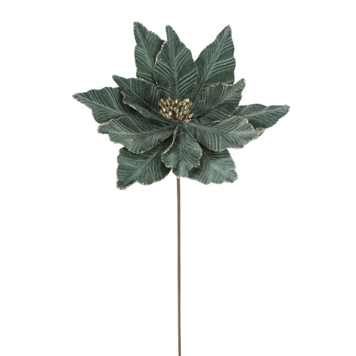 22" Moss Green Velvet Poinsettia Stem for Elegant, Natural Decor