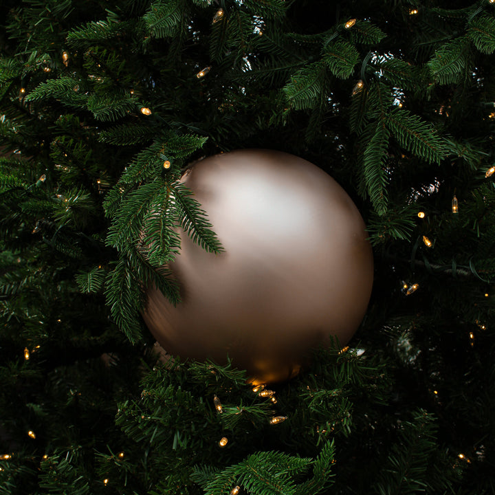 Romantic and delicate, this matte rose gold ball features a velvety finish that softens your decorations. Its subtle, feminine hue adds warmth and elegance. Ideal for a tree, wreath, or window display, it pairs well with white, cream, or gold tones. It perfectly complements a chic and refined style.