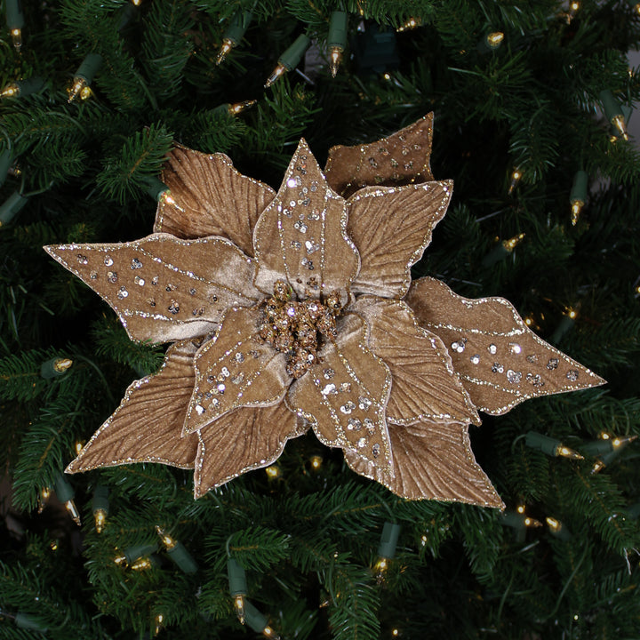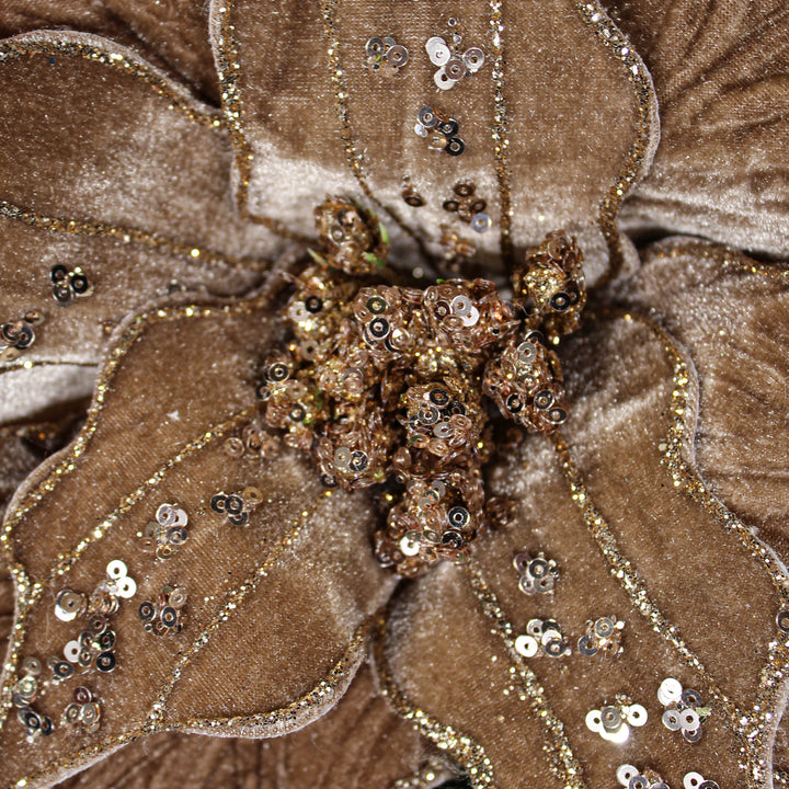 Warm and refined, this 20" mocha poinsettia stem with a 10" flower offers a soft, on-trend hue. Its elegant, lifelike petals add a cozy, sophisticated touch. Ideal for a tree, garland, or decorative table, it pairs well with cream, gold, or copper tones. It enhances a natural, chic style.