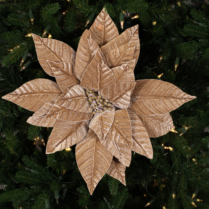 Warm and elegant, this 21.5" mocha poinsettia stem with 18" flower captivates with its soft and sophisticated hue. Its realistic petals add a refined touch to your Christmas arrangements. Ideal for a tree, wreath, or table decoration, it creates a cozy and chic atmosphere. It pairs perfectly with cream, gold, or copper tones.