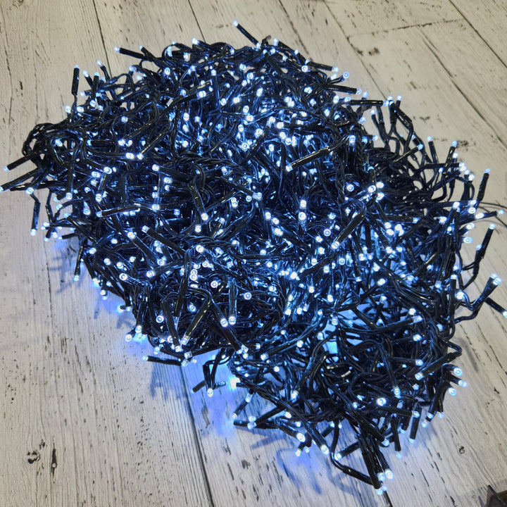 1512 lumières DEL en grappe blanc froid, fil vert, intérieur et extérieur, 8 fonctions, 44.5'