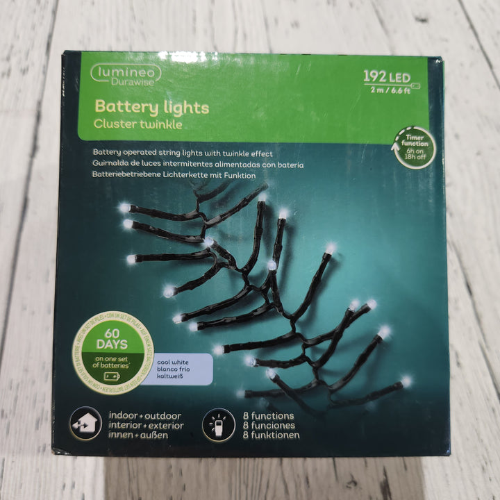 192 Lumières DEL Durawise en Grappe Blanc Froid - Fil Vert, Intérieur et Extérieur, 8 Fonctions, 6,6'