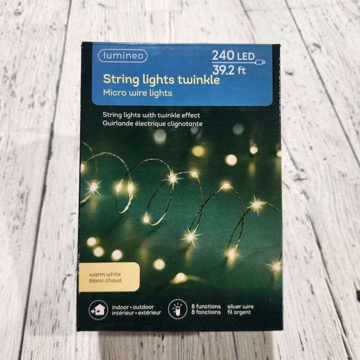240 micro lumières DEL blanc chaud, fil argenté, intérieur et extérieur, 8 fonctions, 39,4'