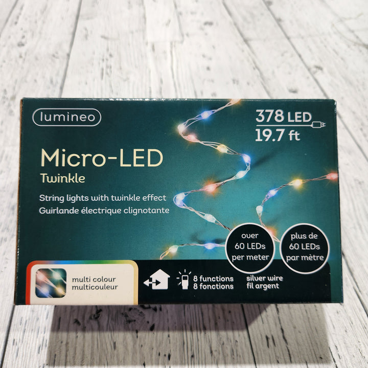 378 micro lumières DEL multicolores, fil argenté, intérieur, extérieur, 8 fonctions, 19,7'