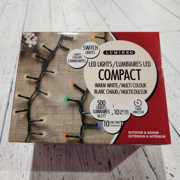 500 Lumières DEL Blanc Chaud et Multicolores, Fil Noir, 8 Fonctions, 36,1'