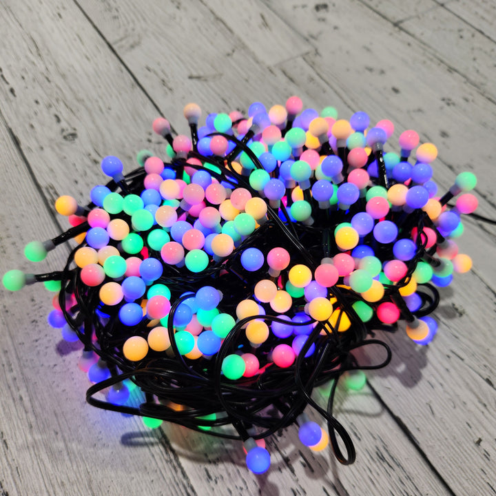 Apportez une ambiance vibrante et festive à vos décorations extérieures avec ces 500 lumières DEL "Cherry" multicolores. Idéales pour illuminer vos jardins, patios ou façades, elles combinent des couleurs éclatantes avec un fil noir élégant pour un effet moderne et dynamique.