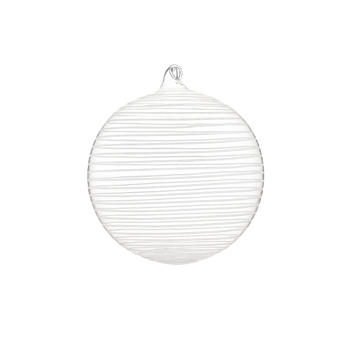 Apportez une touche d’élégance discrète à votre sapin avec cette boule de verre claire ornée de lignes texturées horizontales. Son design moderne et sobre capte la lumière tout en subtilité. Idéale pour les décors minimalistes, nordiques ou contemporains, elle se marie facilement avec d'autres styles et couleurs.
