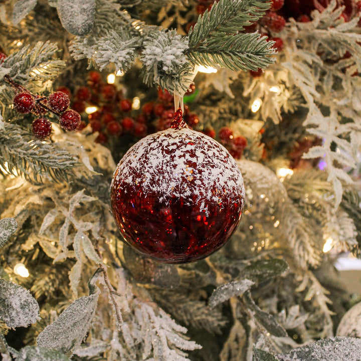 Cette boule de verre rouge recouverte d’un effet enneigé ajoute texture et contraste à votre sapin. Son fini givré blanc rappelle les paysages d’hiver et s’agence parfaitement à un décor classique ou nordique. Une valeur sûre pour une ambiance chaleureuse.