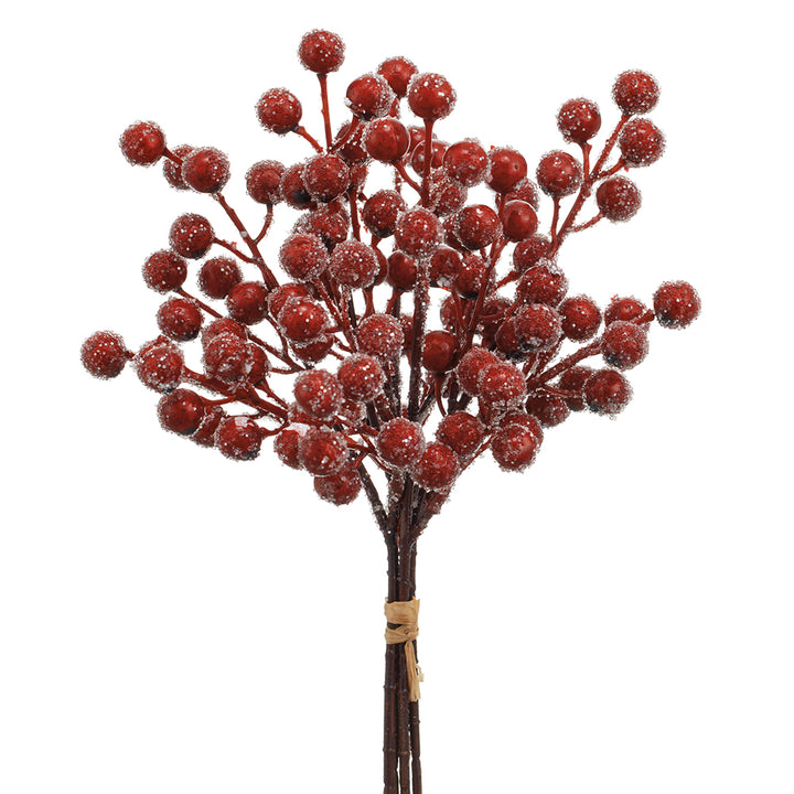 Ajoutez de la texture et de la couleur à vos compositions avec cette tige de 5 grappes de baies glacées rouges 11''. Parfaites pour accentuer un sapin, une guirlande ou un centre de table avec un effet givré naturel et chaleureux.